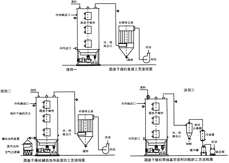 (2)加热介质:干燥盘温度100℃时用热水加热,100-150℃时用饱和蒸汽加热,150℃以上采用导热抽加热。